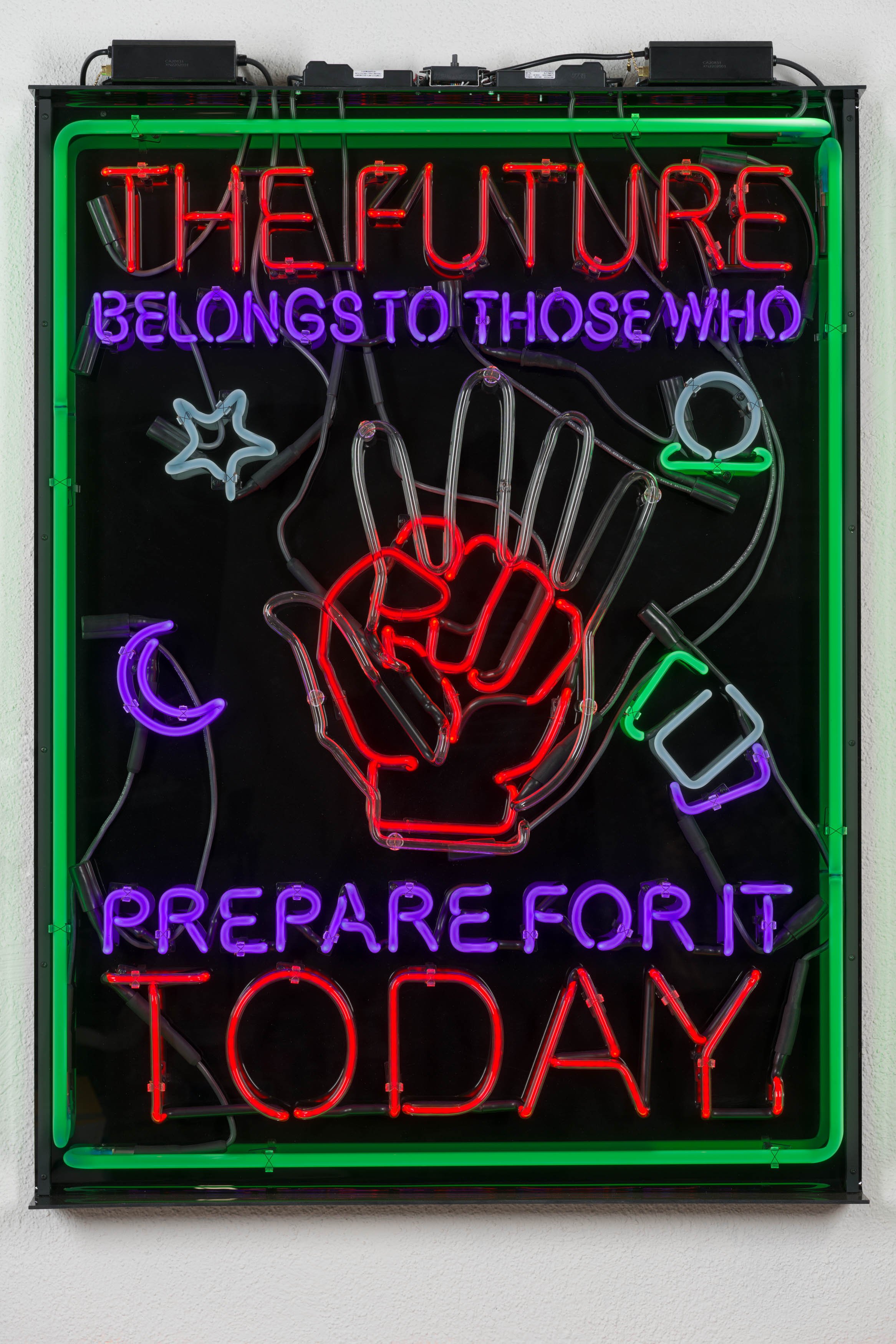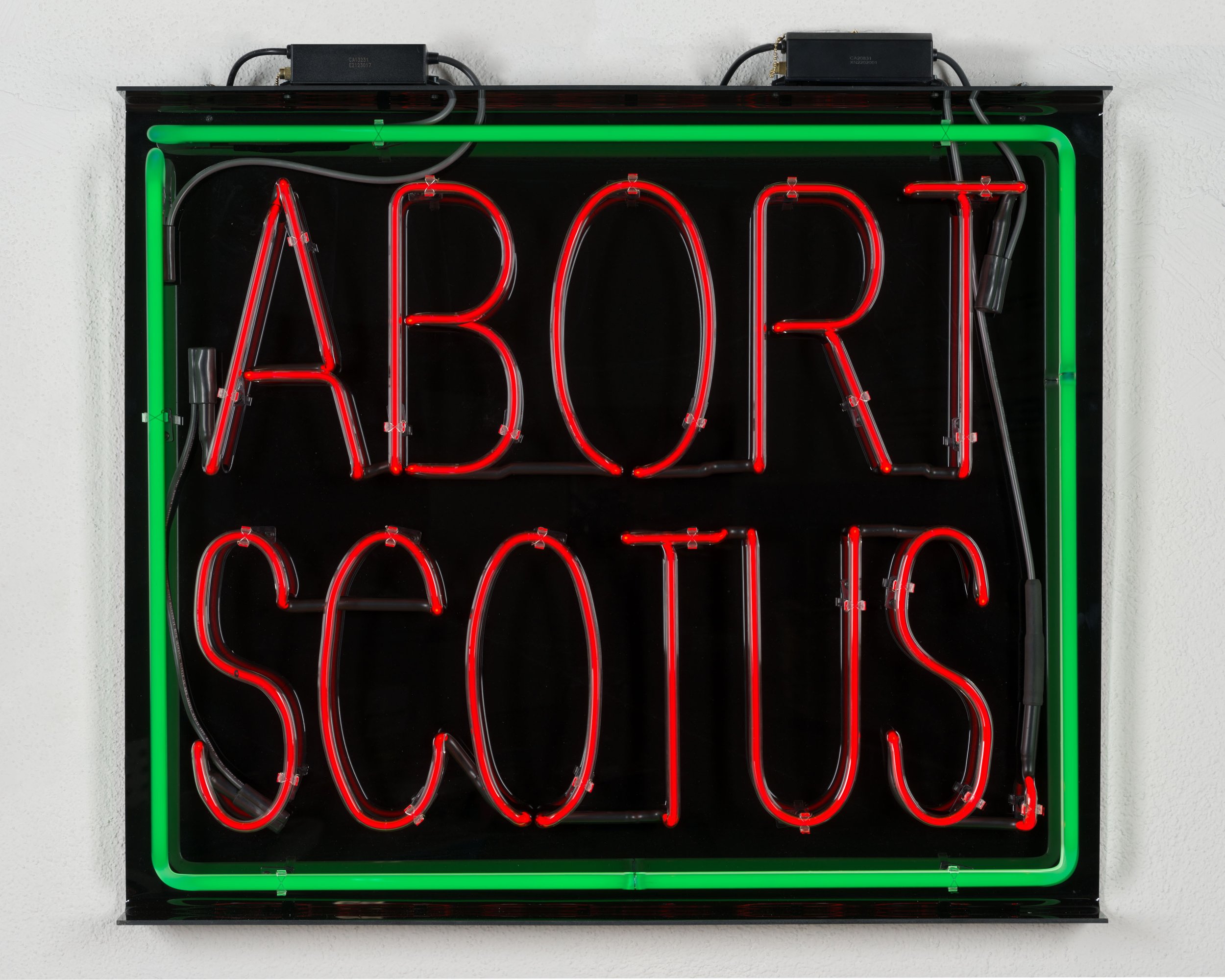 For our ABMB presentation, Patrick Martinez has created a new installation of neon works on the main wall of the booth, addressing recent sociopolitical developments here in the US including the Supreme Court ruling on Roe vs. Wade. Patrick’s neon on Plexiglas pieces are fabricated in exactly the same manner as typical street level neon signage. Patrick’s neon forms are mounted to sheets of Plexiglas with transformers installed on a curved lip of Plexiglas at the top. Patrick uses words from oratorical sources, song lyrics, or of his own invention to respond to contemporary cultural and political conditions. The formal unity of the booth, though composed of discrete paintings and neon elements, will impart the immersive experience of an installation, and will locate viewers powerfully in abstracted places from Patrick’s Los Angeles – places decades old, some lost to gentrification, sites of long-standing inhabitation fading from view.