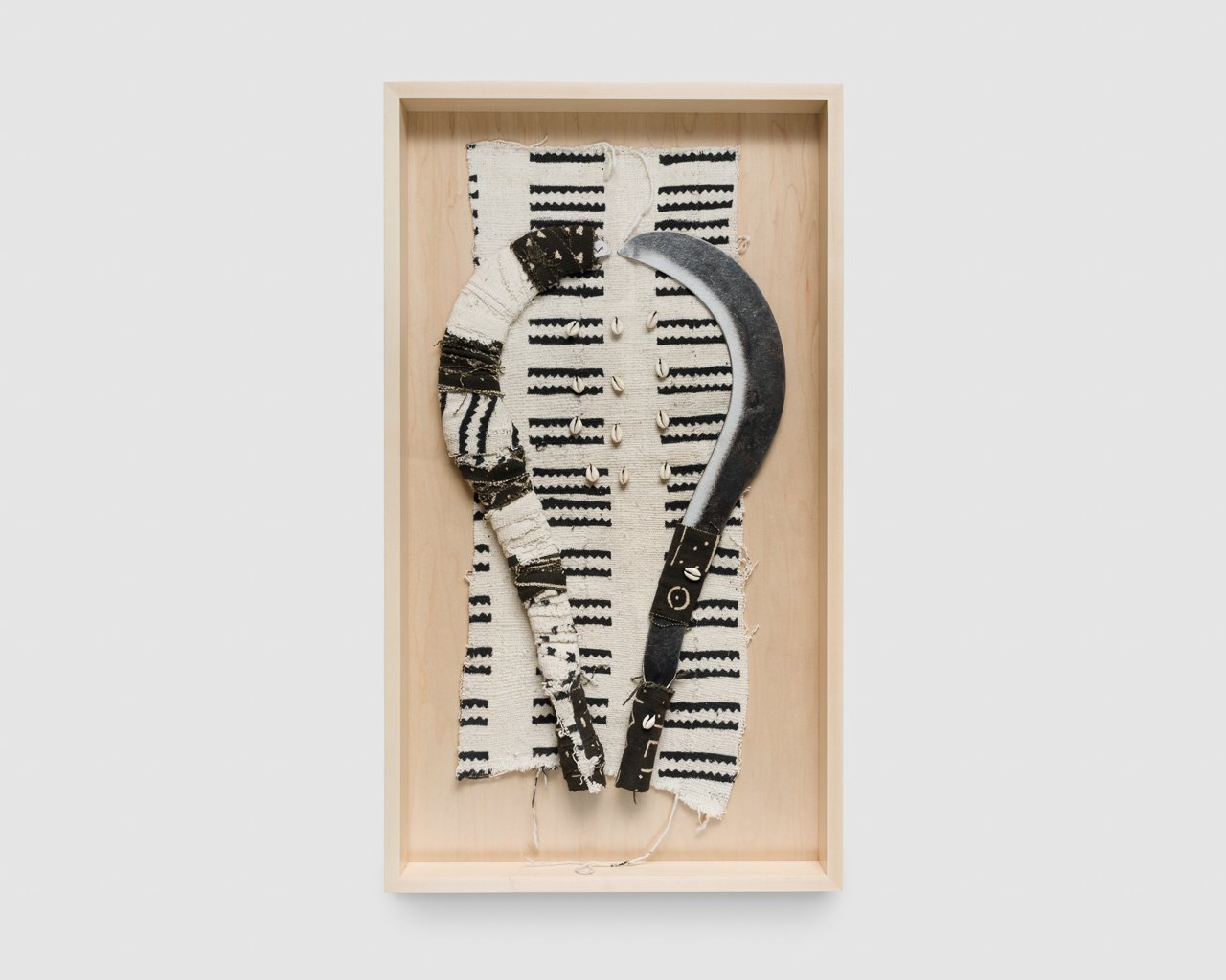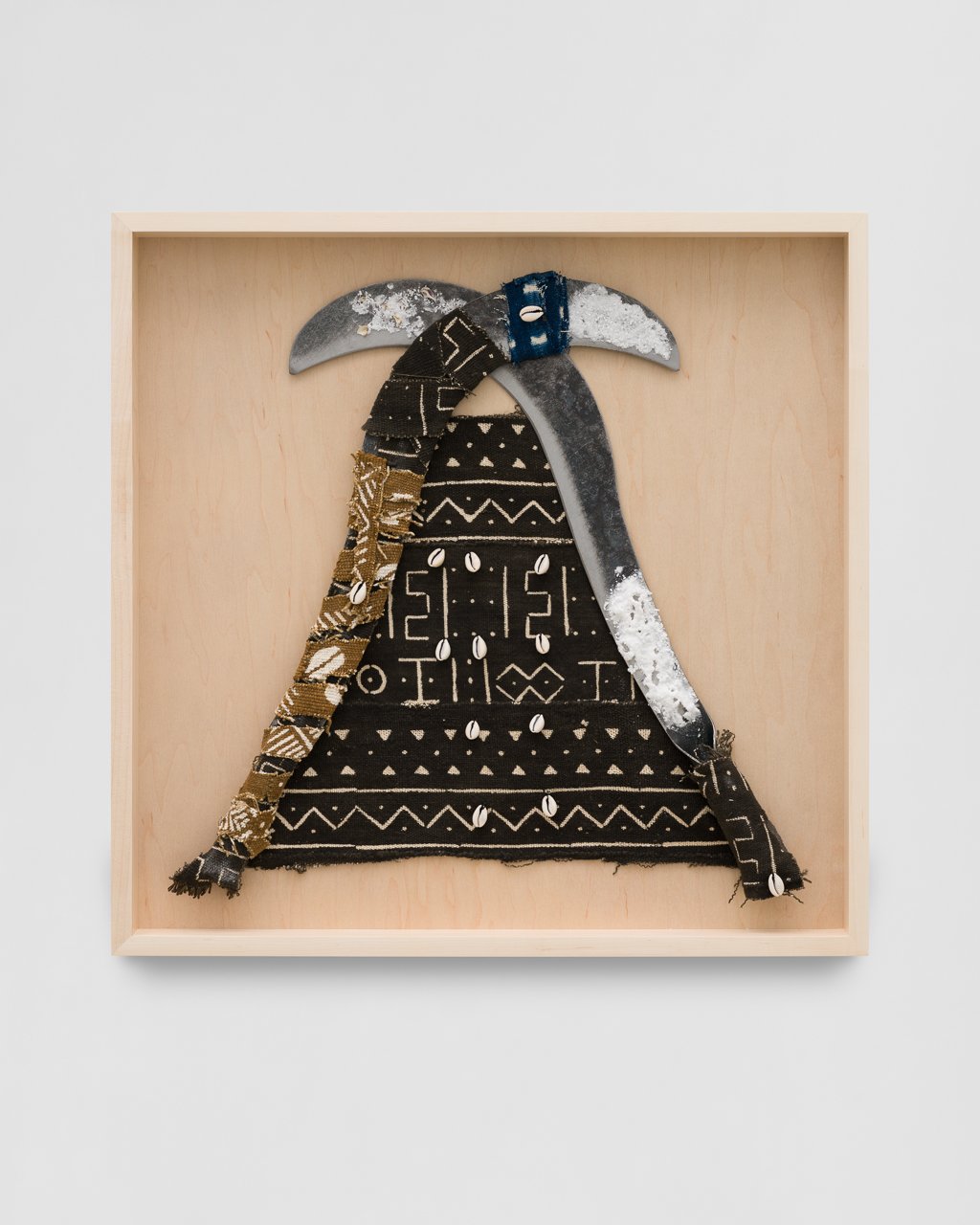 Fusing Malian mud cloth textiles, cowrie shells and metalwork to create what Cullors refers to as “a sanctuary of reflection and empowerment,” the core of the exhibition revolves around the sword of Oya, a spiritual emblem of power, protection and divine justice. Throughout Between the Warp and Weft, Oya's sword transcends its historical significance to address the pressing narrative of our times — the need for protection and reverence for Black women.