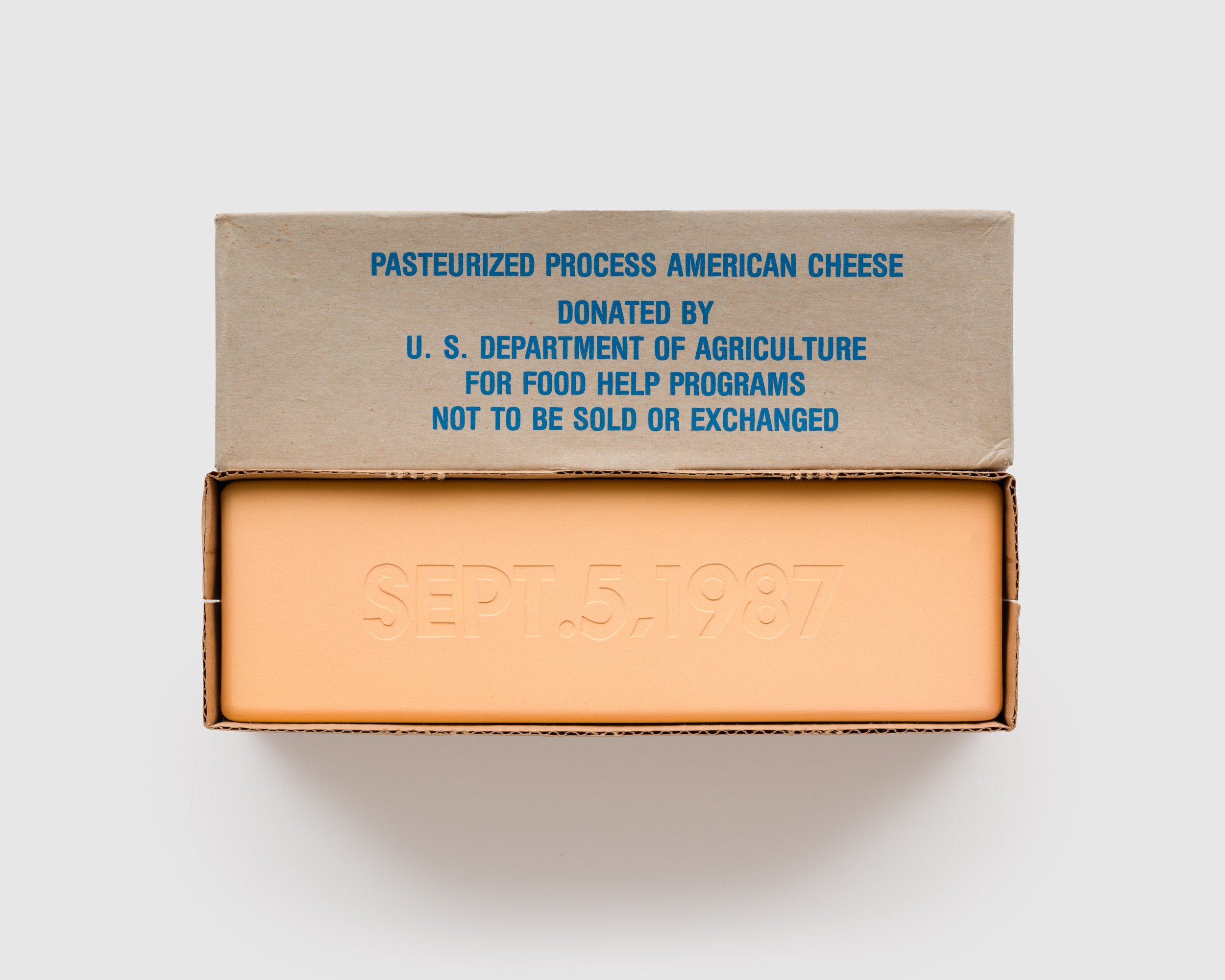 The exhibition takes its title from a track off of Jay-Z’s 1996 debut album, in which the rapper alludes to the mental toll of the hustle and a foundational desire to rise out of poverty. Raos brings his own experience of scarcity to this body of work. The key to the exhibition lies in its smallest painting: the diminutive canvas of Untitled (Product of Poverty) sits snug within an appropriated cardboard box that once held a block of so-called government cheese, that highly processed product distributed for free to low-income households since the Reagan administration. Raos, himself a product of the Reagan ‘80s, has debossed his own birthday into the soft cheese-orange canvas in the style of On Kawara, stamping his own identity into the annals of art history and reclaiming what was once a source of shame.